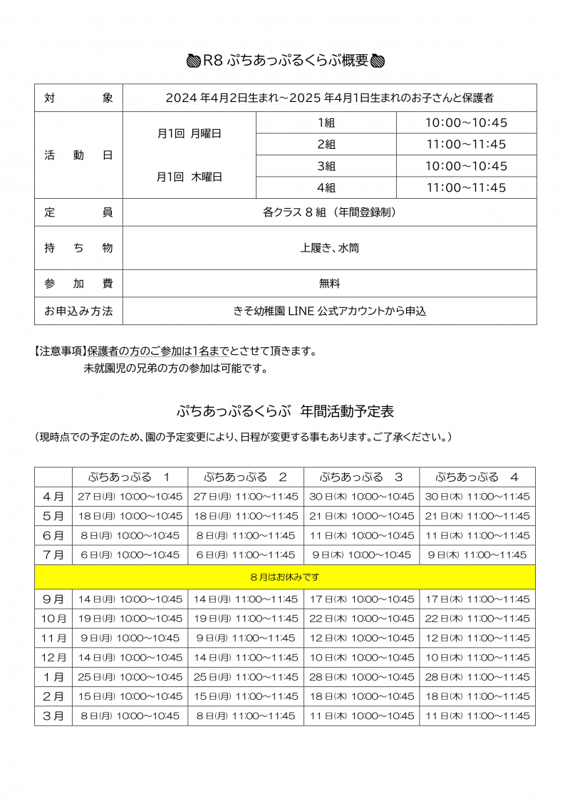令和8年度1歳児親子教室ぷちあっぷるくらぶ申込が開始になりました
